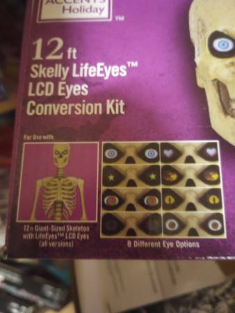 all new in box eye kit 20.00 light kit 35.00 and the step pads are 10.00 each,we also have a witch outfit for your 12' skelly, plus a few different 12' skeletons...........................Moving and selling off a Huge collection of Halloween and Christmas, building supplies,beer signs, mancave supplies,etc, etc. real nice stuff..........click on the "more ads by this user" link to take a look. email or give us a call six 0 seven 43four two eight eight eight thanks for looking...