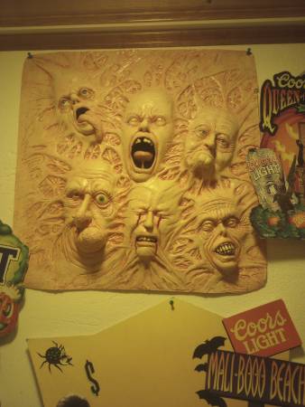 Very nice, woodgrain metal 9" x 9" works well, there is a whole benchmark collection of signs and bottles,water pictures etc, nice vintage stuff ------------------.Moving and selling off a Huge collection of Halloween and Christmas, building supplies,beer signs, mancave supplies,etc, etc. real nice stuff..........click on the "more ads by this user" link to take a look. email or give us a call six 0 seven 43four two eight eight eight thanks for looking...