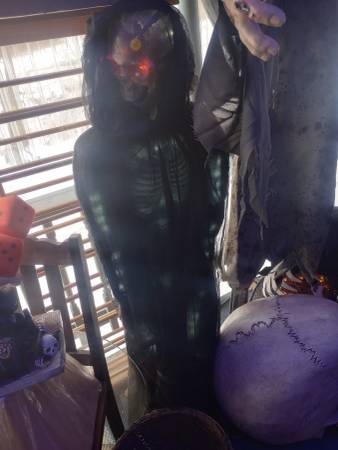 cool light up skele about 5' tall, this is a nice size it fit's anywhere...........................Moving and selling off a Huge collection of Halloween and Christmas, building supplies,beer signs, mancave supplies,etc, etc. real nice stuff..........click on the "more ads by this user" link to take a look. email or give us a call six 0 seven 43four two eight eight eight thanks for looking...