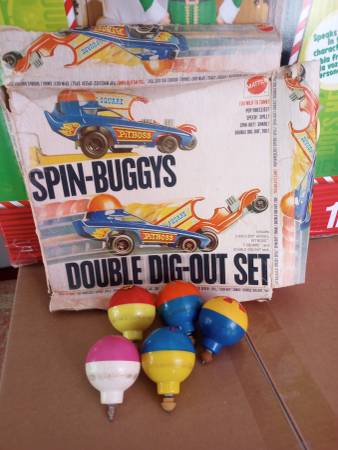 old school toys, 1960s 5 mattel wizzers,one has broken tip, plus the spin buggy box only. this is a great deal for a few vintage toys........................................Moving and selling off a Huge collection of Halloween and Christmas, building supplies,beer signs, mancave supplies,etc, etc. real nice stuff..........click on the "more ads by this user" link to take a look. email or give us a call six 0 seven 43four two eight eight eight thanks for looking...
