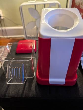 Selling a hot air popcorn maker. Used about 2 or 3 times and then just forgotten about. Still in basically brand new condition. Comes with original packaging and literature as well. *PICKUP ONLY*