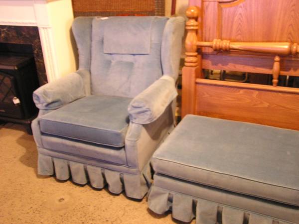 Upholstered Chair with Matching Ottoman - Blue - Excellent! $150